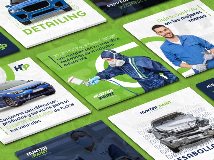We also refreshed Hunter Paint’s corporate identity, extending the updated brand across physical touchpoints like uniforms, promotional materials, and large-format signage. Our goal was to position Hunter Paint not just as a repair shop, but as a trusted partner in helping customers restore their vehicles to look and feel as good as new.